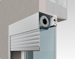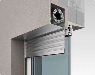 Короб роллеты устанавливается на стену фасада, обеспечивая максимальное использование светового проема.